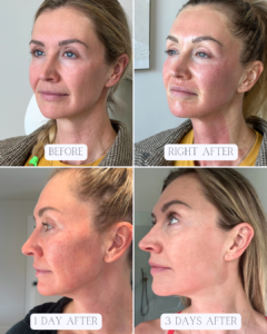 • Expected mild side effects may include redness, swelling, sensitivity, and peeling during the healing phase— however, these are normal signs that the skin is healing.